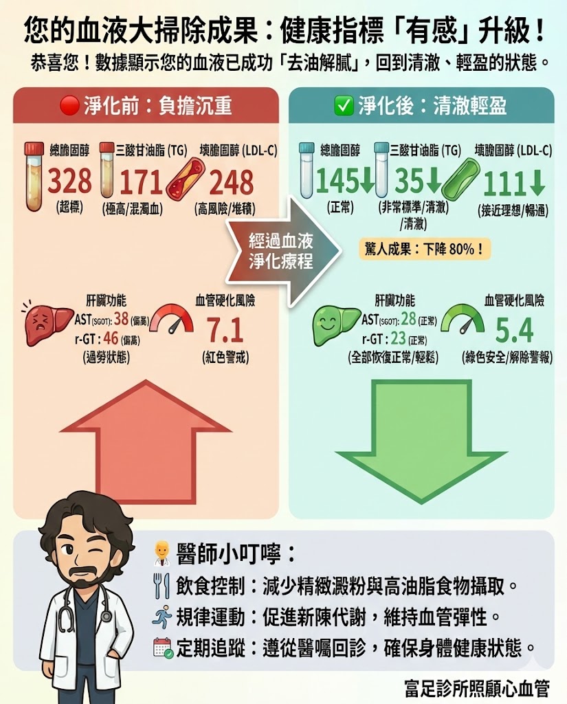 68歲阿姨 低密度膽固醇 248 --> 111 (一次清掉55%)