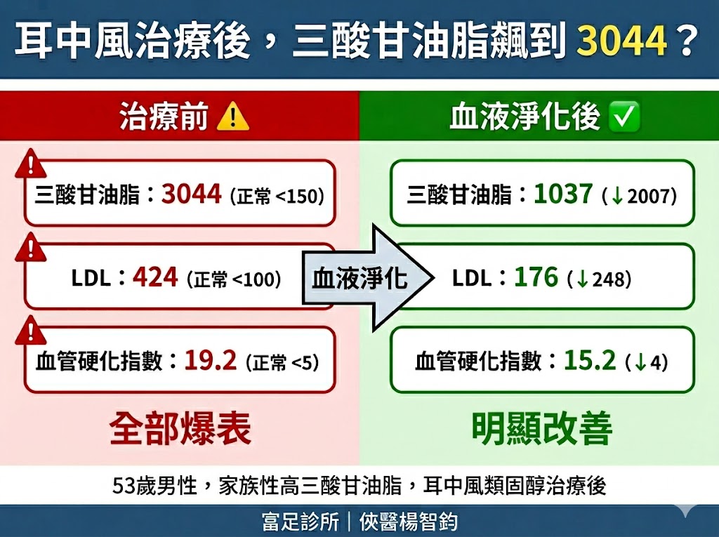 耳中風治療後,三酸甘油脂竟飆到...