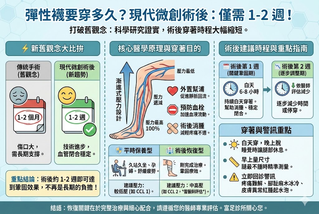 靜脈曲張術後彈性襪要穿多久?俠醫詳解新研究:「不用穿到一個月那麼久!」